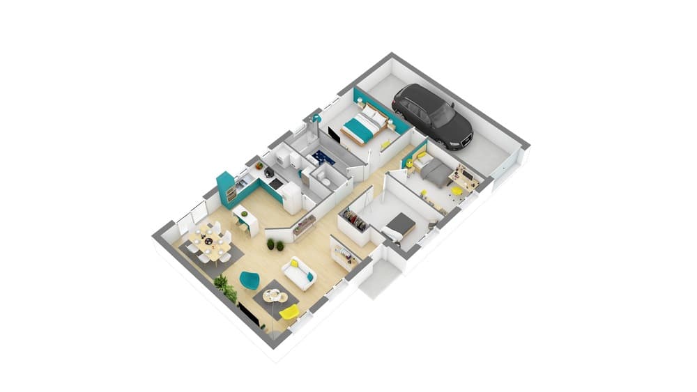 Avec le modèle Perrière, vous faites le choix d’une véritable signature esthétique sans faire de compromis sur l’espace à vivre. C’est une maison de plain-pied qui vous est proposée dans des surfaces allant de 87 m² à 108 m². Ce sont des dimensions raisonnables pour une maison familiale très confortable et bien pensée.