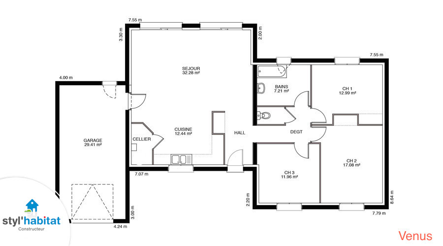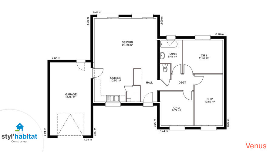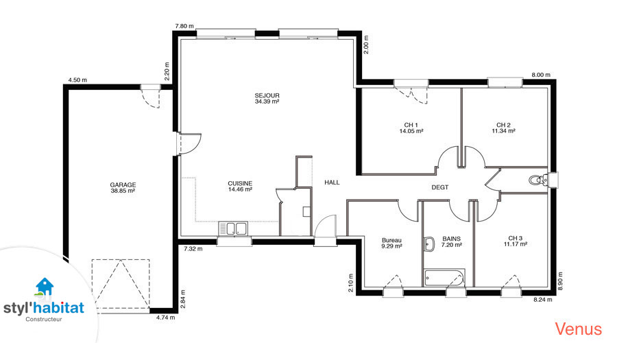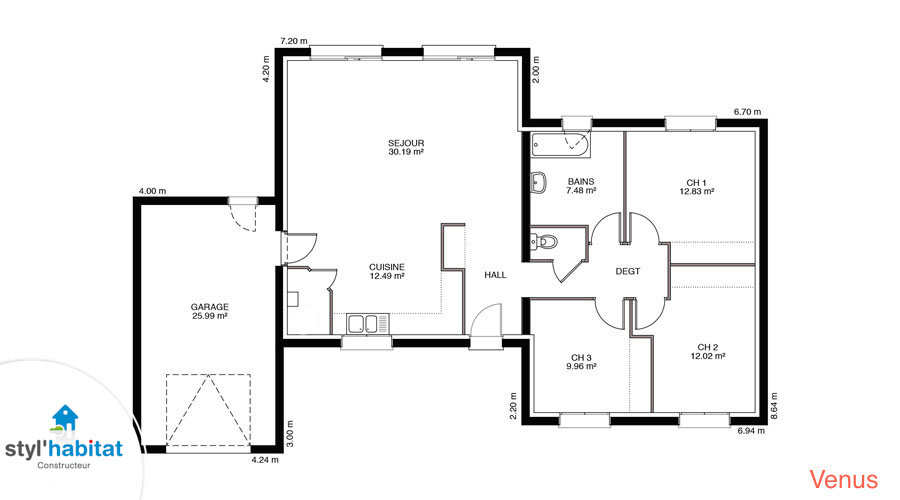 Vénus… tout un programme pour une maison d’un autre univers… et pourtant très rationnelle et familiale. Disponible de 90 m² à 120 m ², elle sait s’adapter à vos besoins. Cette maison contemporaine à toit plat (bac acier) est un must have pour tous les amateurs de volumes cubiques, très demandés depuis quelques années.